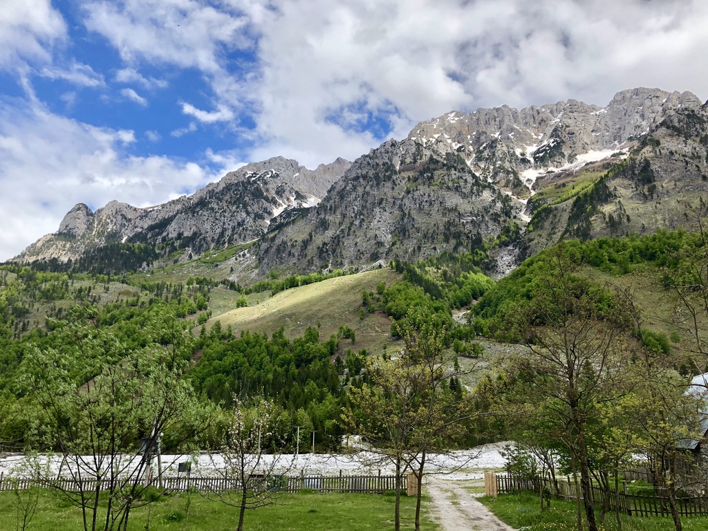 Schroffe Dolomitengipfel in der Ferne