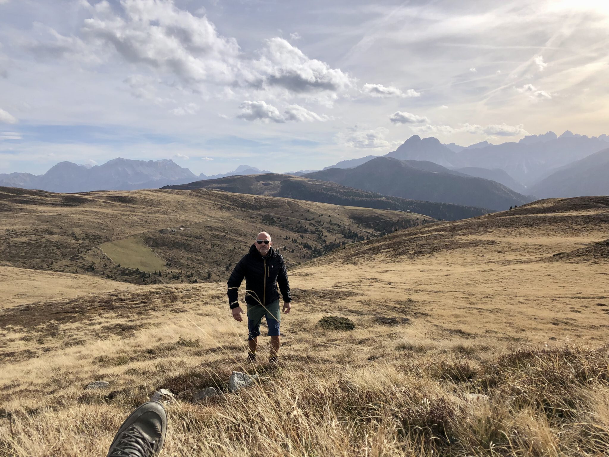 Weites Almengelände mit Dolomitenblick
