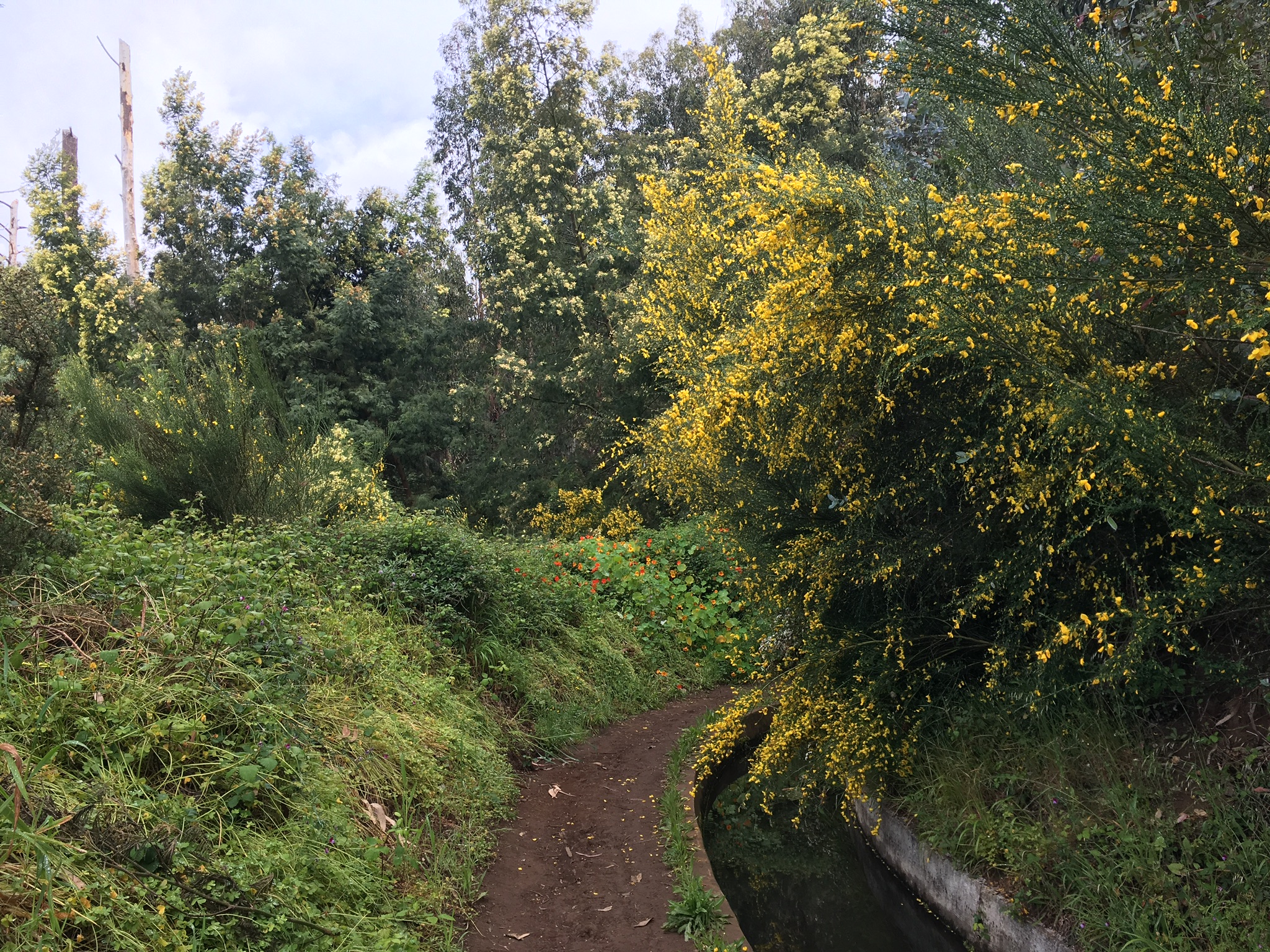 Ginsterbüsche und Eukalyptuswald am Einstieg der Levada do Norte