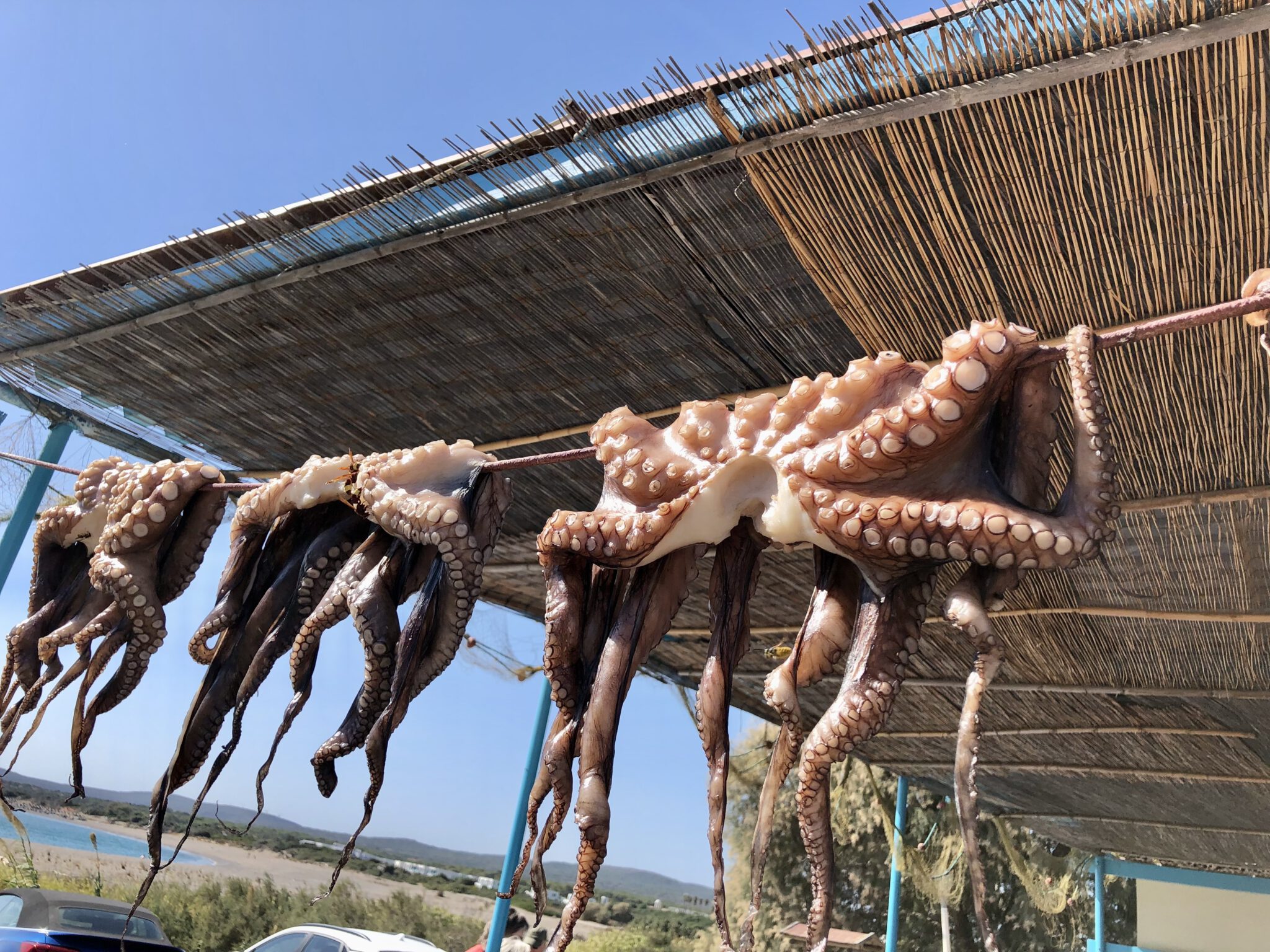 Oktopus zum Trocknen aufgespannt