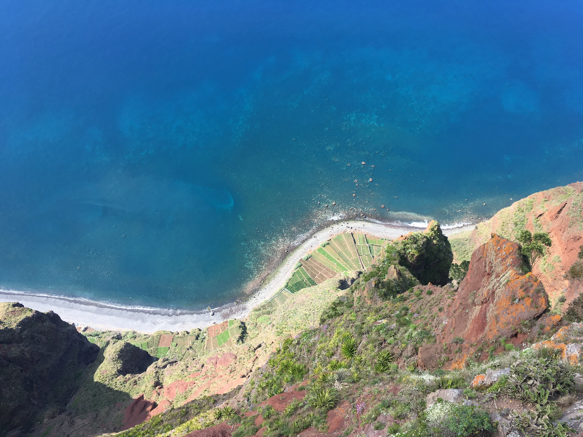Blick von Cabo Girão auf die Felder am Meer