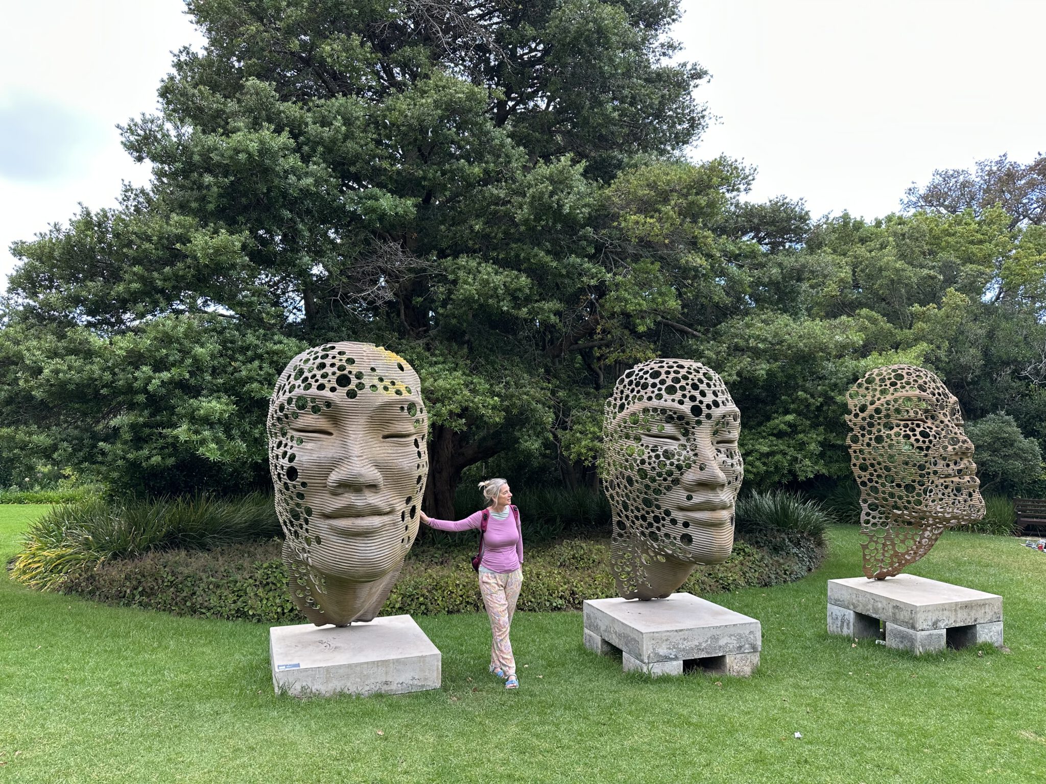 Seine Skulpturen (in diesem Fall die berühmten Masken) sind unter anderem im Weingut Grand Provence in Franschhoek oder im Delaire Graff Estate in Stellenbosch ausgestellt.