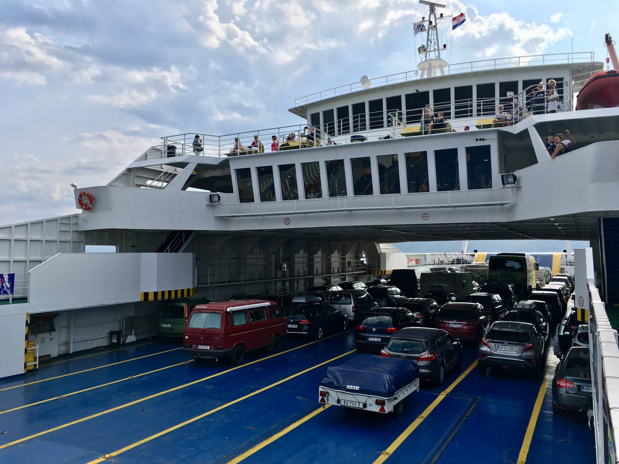 Auf sehr kurviger Strecke cruisen wir auf kleinen Landstraßen durch Slowenien und nach Kroatien hinein, der RedBulli läuft wie geschmiert; die Fähre schaffen wir gerade rechtzeitig und kommen als letztes Auto an Bord – schon sind wir auf der Insel Cres!