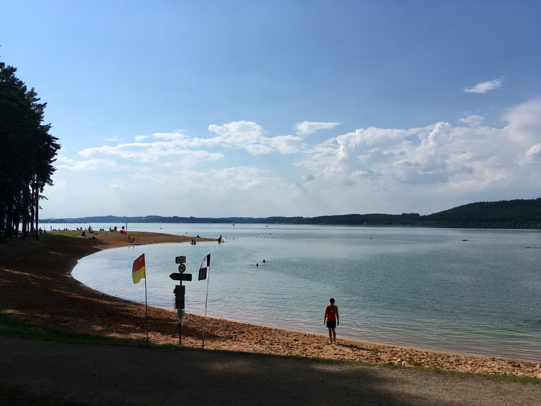 Zumeist führt er durch herrlichen Kiefernwald etwas abseits des Sees, unterbrochen vom Badestrand bei Ramsberg.